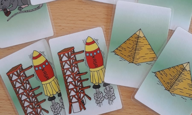 Beim zweiten Spiel handelt es sich um ein Lotto. Eine Karte wird aufgedeckt und muss einer Ablegekarte zusortiert werden. Wer hat zuerst alle Bilder seiner Ablegekarte gesammelt?